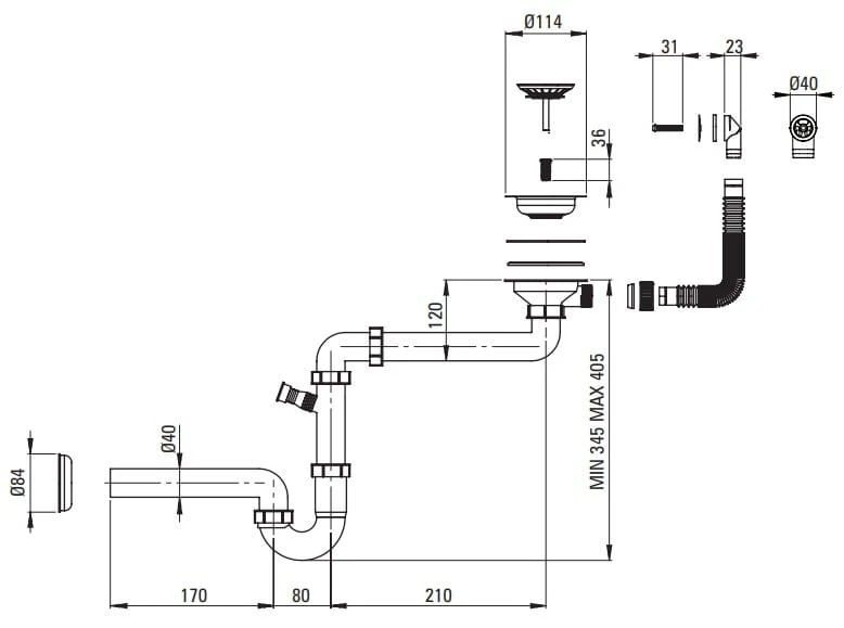- OSPRZĘT DO ZLEWOZMYWAKA - Syfon oszczędzający miejsce space-saver Tak