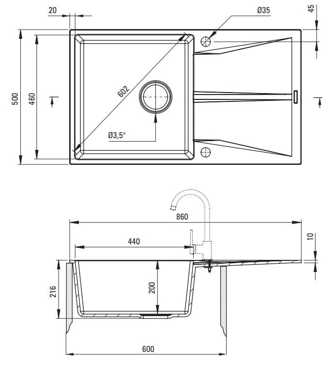 - ZLEWOZMYWAK - Wysokość [mm] 216
