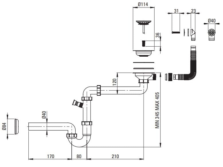 - Syfon oszczędzający miejsce Space-saver ułatwiający m.in. segregację śmieci