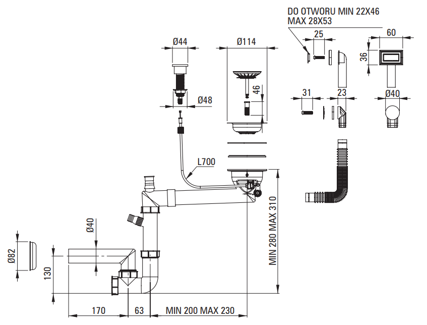 - ZLEWOZMYWAK - Wysokość [mm] 220