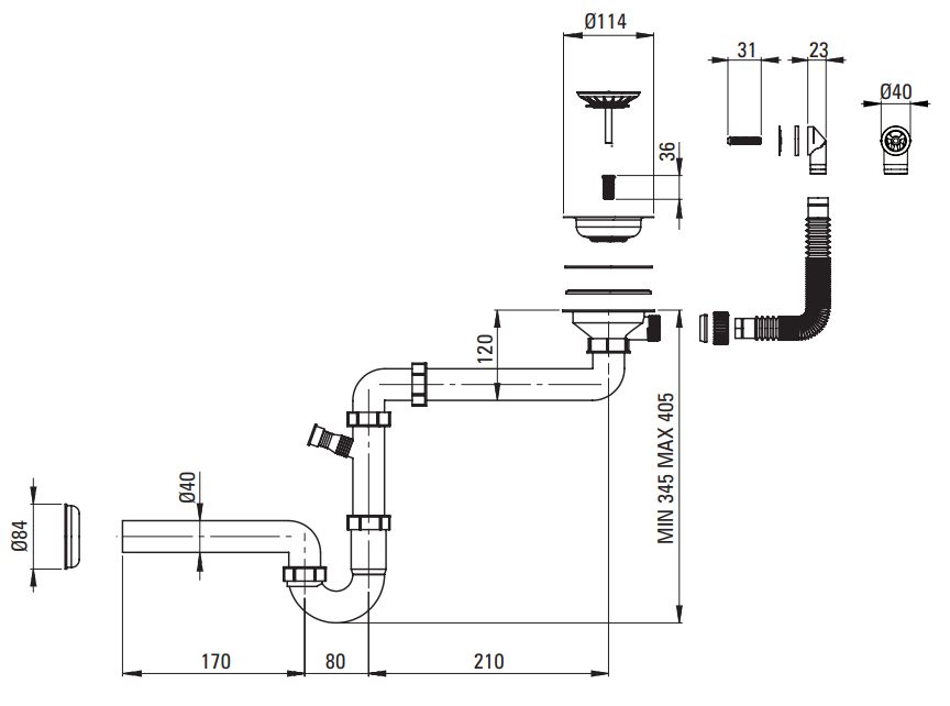 - OSPRZĘT DO ZLEWOZMYWAKA - Syfon oszczędzający miejsce space-saver Tak