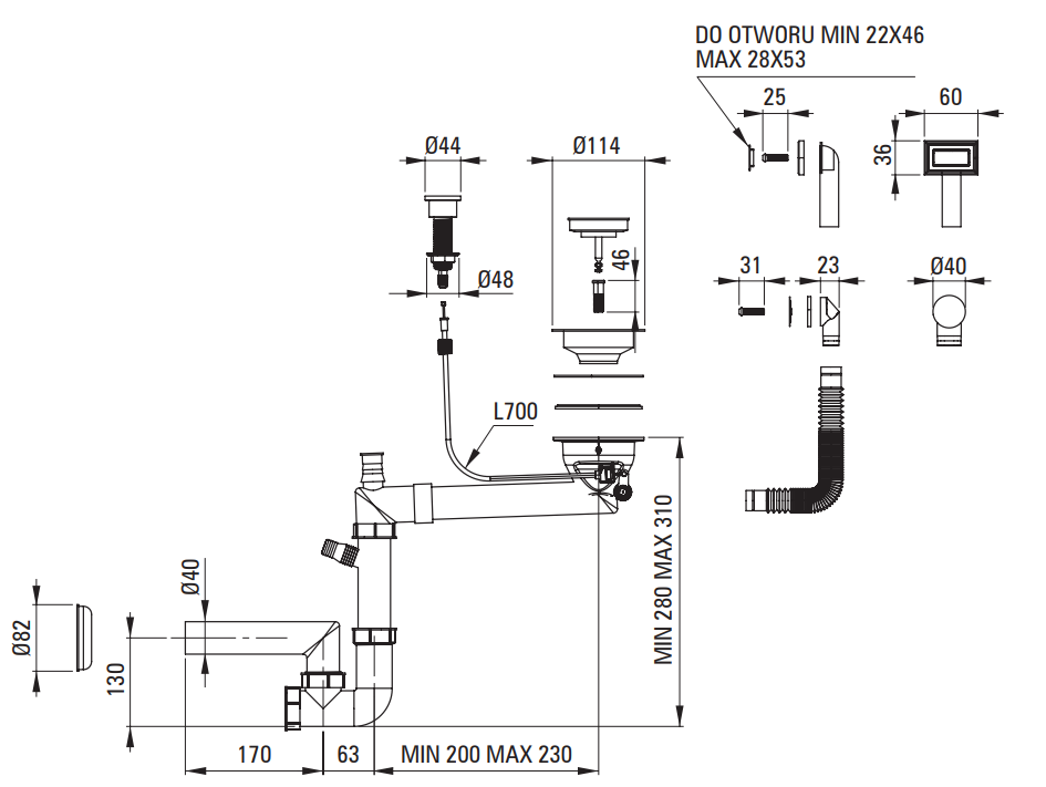 - OSPRZĘT DO ZLEWOZMYWAKA - Rodzaj korka automatyczny, z przyciskiem