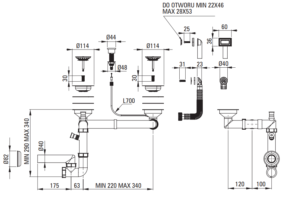 - OSPRZĘT DO ZLEWOZMYWAKA - Syfon oszczędzający miejsce space-saver Tak