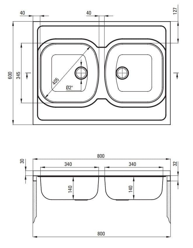 Zlewozmywak 2-komorowy bez ociekacza - satyna Tango Deante