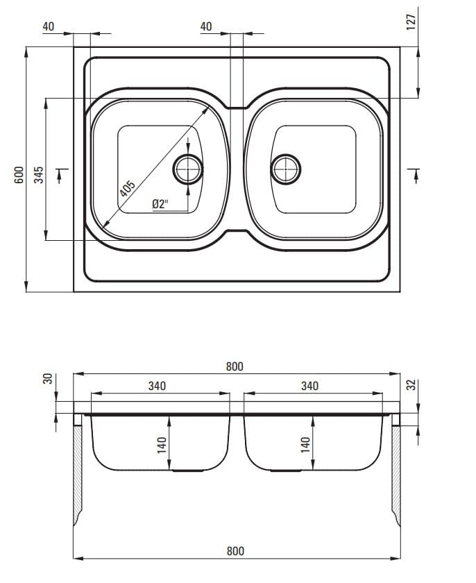 - Model zlewozmywaka 2 komory