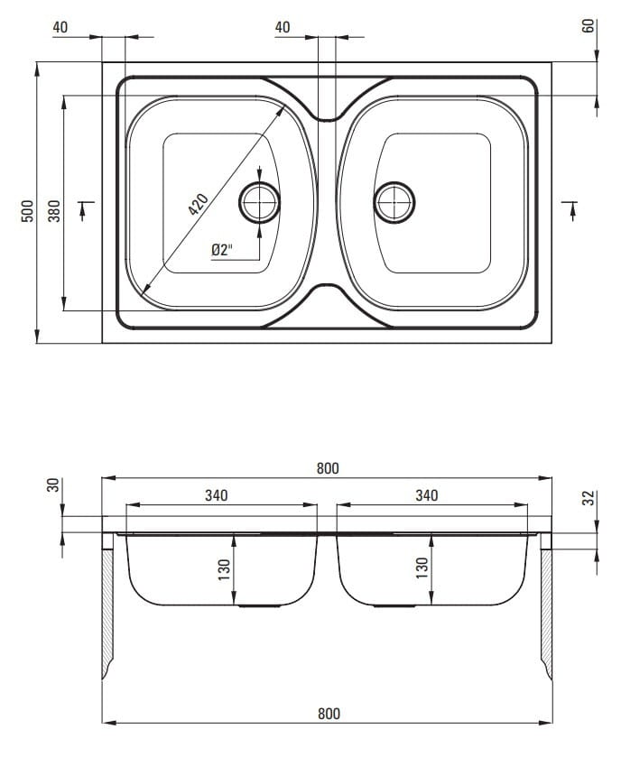 - Model zlewozmywaka 2 komory