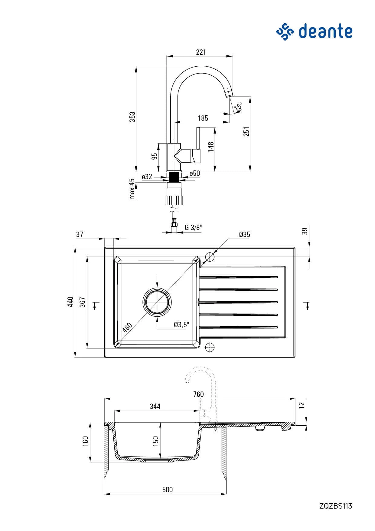 Zlewozmywak granitowy z baterią 1-komorowy z ociekaczem Zorba Deante