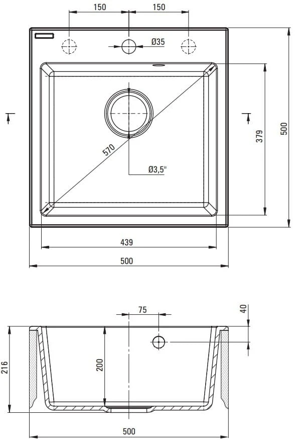 - Średnica Odpływu 3.5''