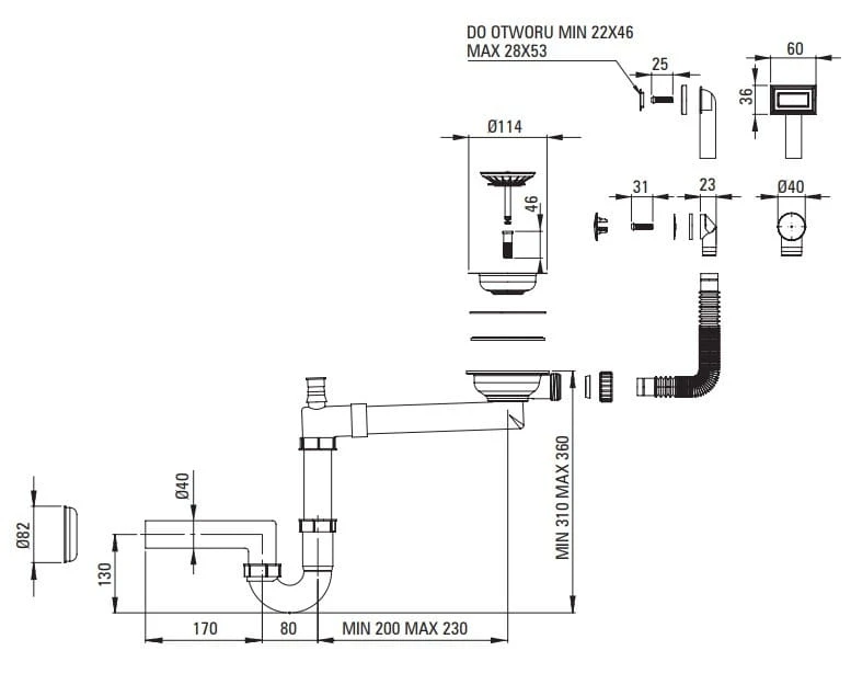 - Syfon oszczędzający miejsce Space-Saver Tak