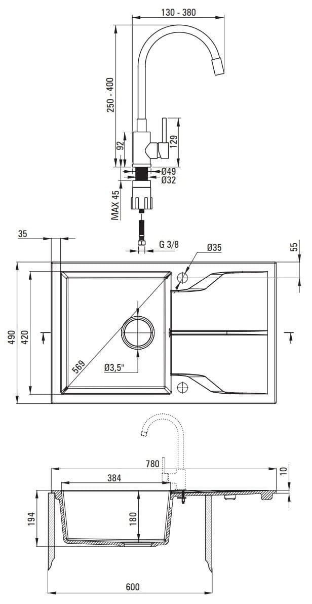 - ZLEWOZMYWAK - Wysokość [mm] 194