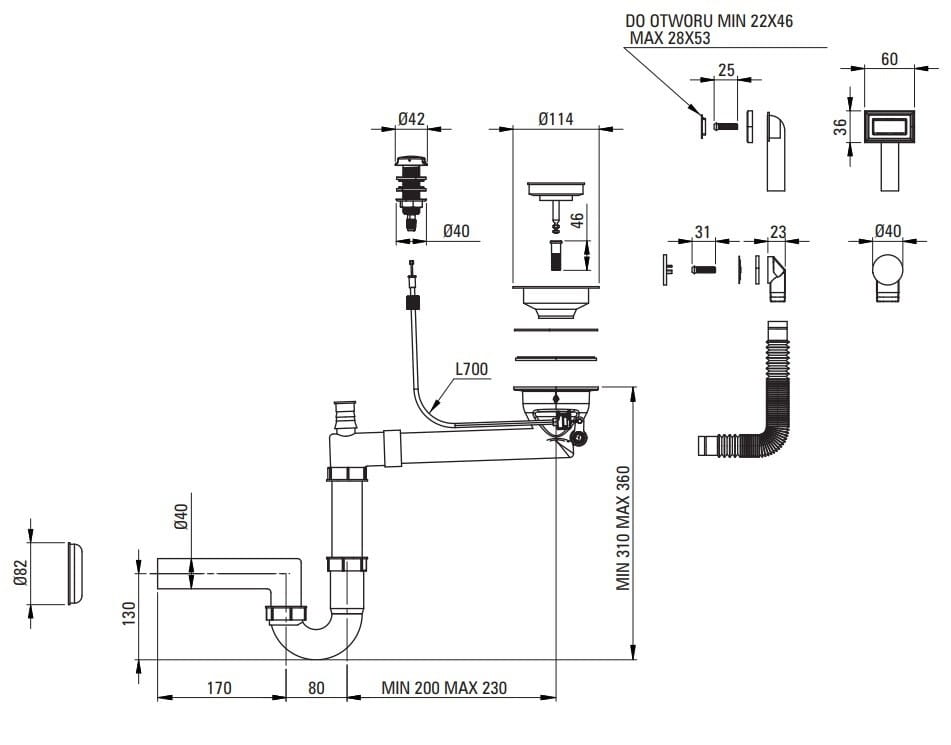 - OSPRZĘT DO ZLEWOZMYWAKA - Syfon oszczędzający miejsce space-saver Tak