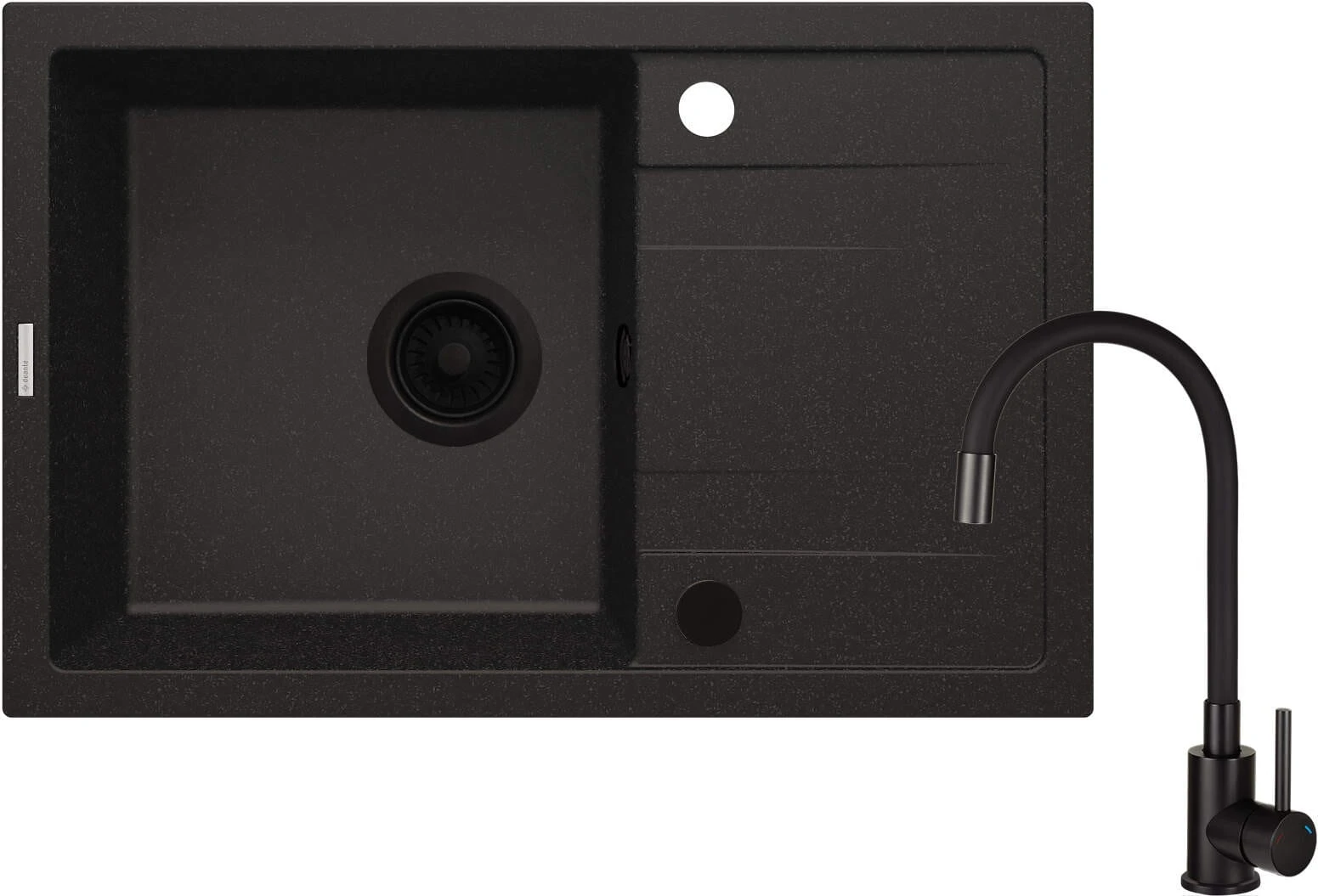Zlewozmywak granitowy z baterią 1-kom grafit metalik Corio Deante