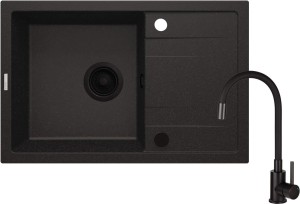 Zlewozmywak granitowy z baterią tworzy kompletny zestaw do kuchni. Powstał z wytrzymałego, naturalnego granitu, który jest odporny nie tylko na wysoką temperaturę i jej wahania, ale także na uderzenia i przebarwienia, zgodnie z normą europejską PN-EN 13310. Dodatkowo został wzbogacony warstwą hydrofobową, ułatwiającą spływanie pojedynczych kropel. W tej samej kolorystyce jest też bateria z wygodną wylewką. Praktyczny, 1-komorowy zlewozmywak z ociekaczem to doskonałe rozwiązanie w małych kuchniach i kawalerkach z aneksem. Pełni jednocześnie funkcję suszarki, profilowana powierzchnia sprawnie odprowadza wodę spływającą z naczyń lub umytej żywności.