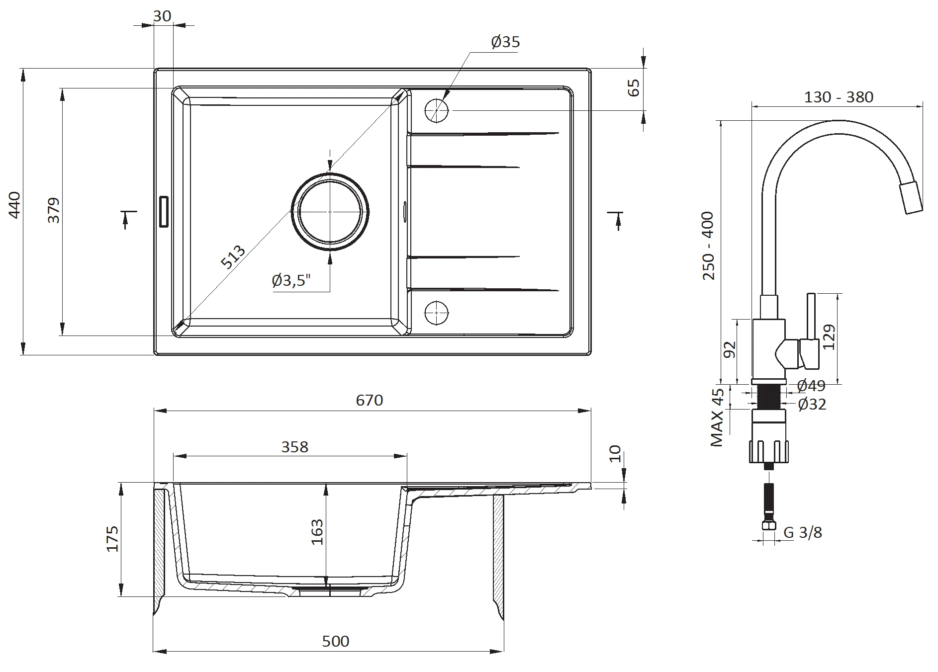 - ZLEWOZMYWAK - Wysokość [mm] 175