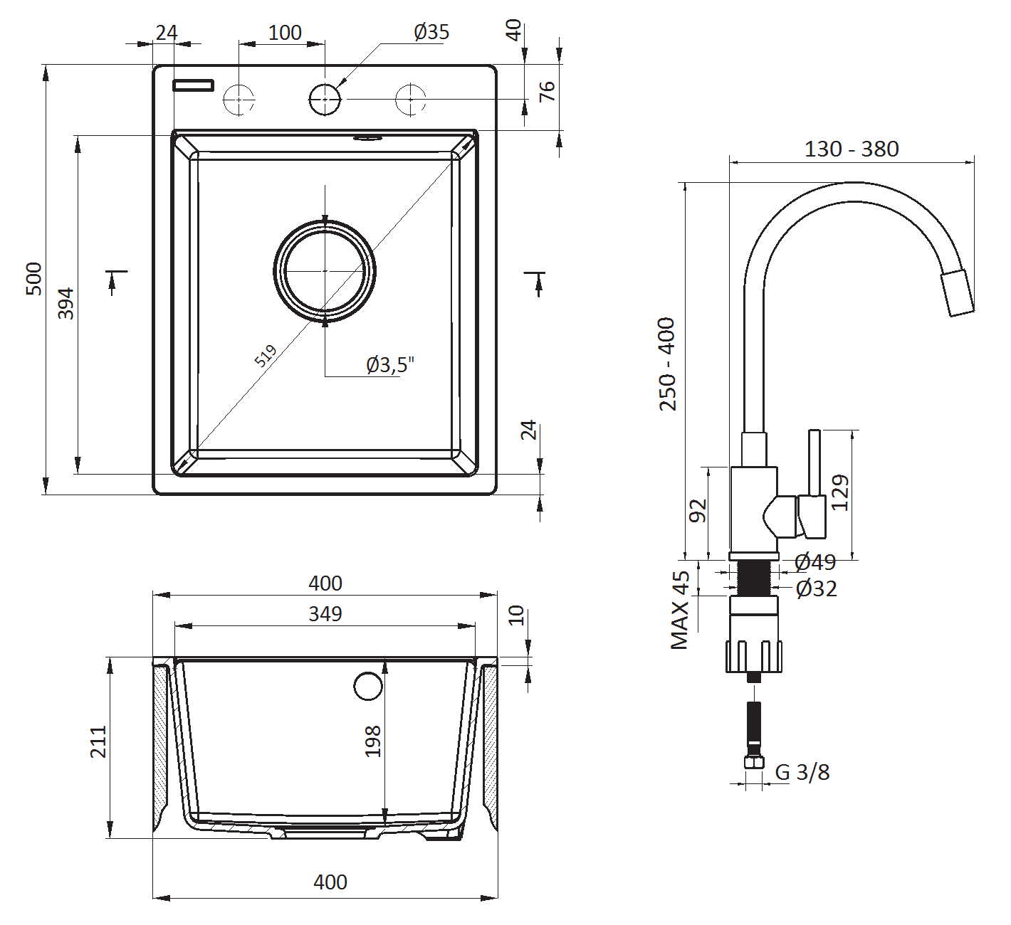 - ZLEWOZMYWAK - Minimalna szerokość szafki [mm] 400