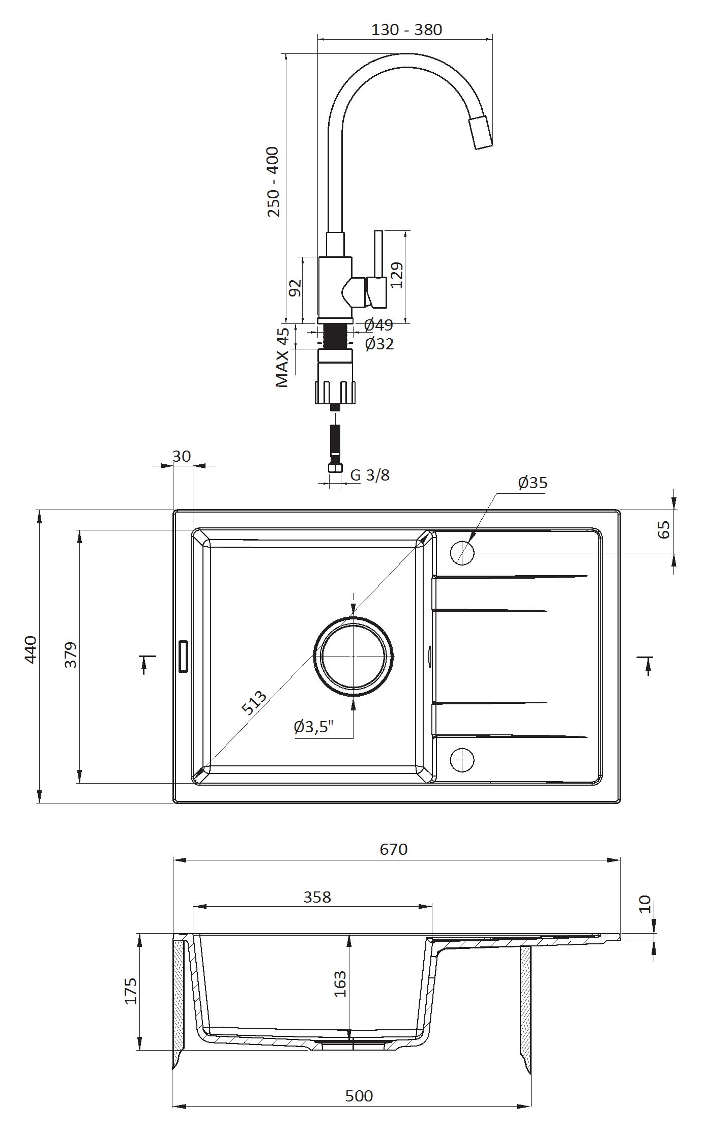 - ZLEWOZMYWAK - Wysokość [mm] 175