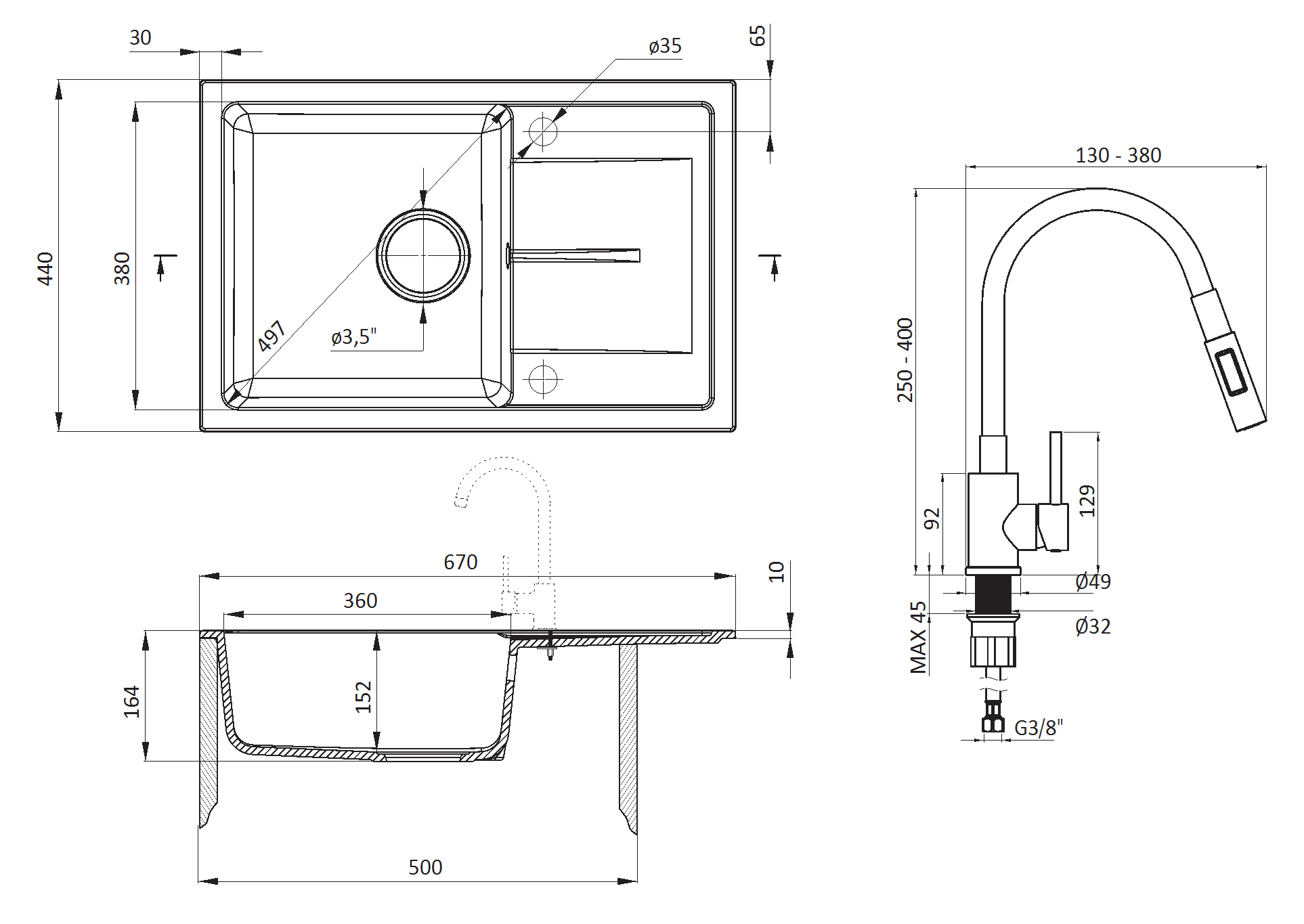 - ZLEWOZMYWAK - Wysokość [mm] 164
