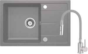 Zlewozmywak granitowy z baterią szary metalik Leda Deante
